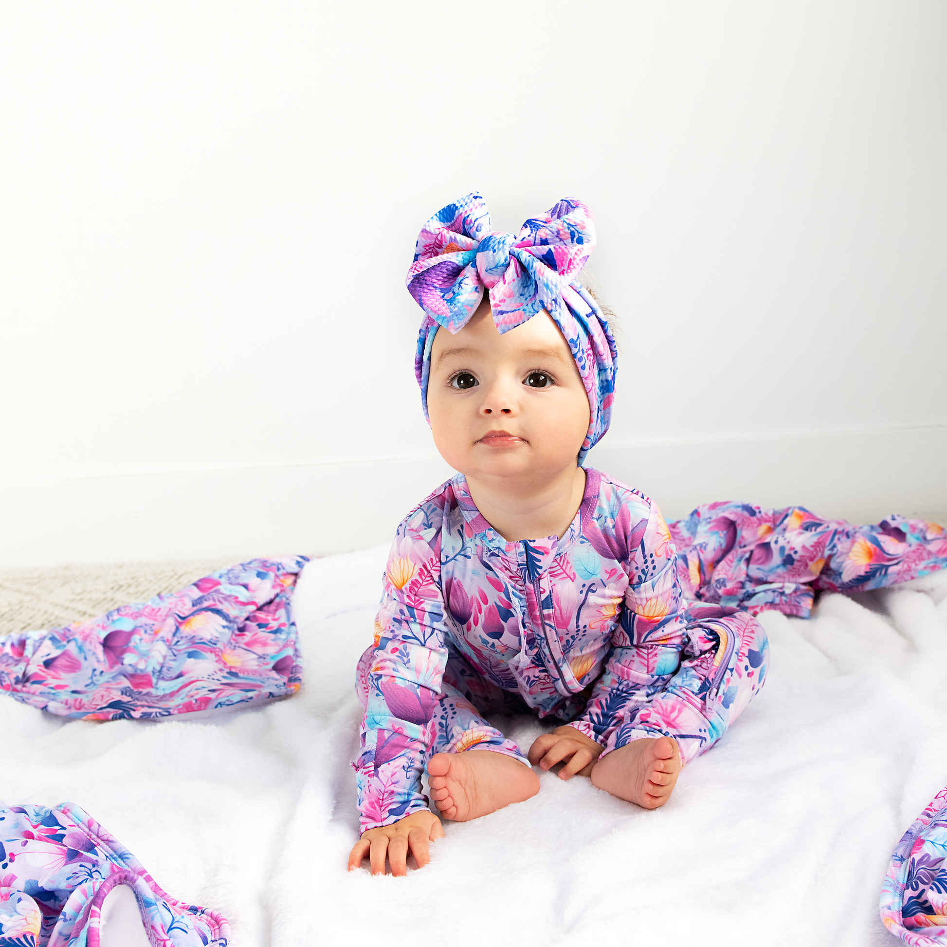 Ayla Floral Ruffle Zip Bamboo Baby Outfit Sleepies Little